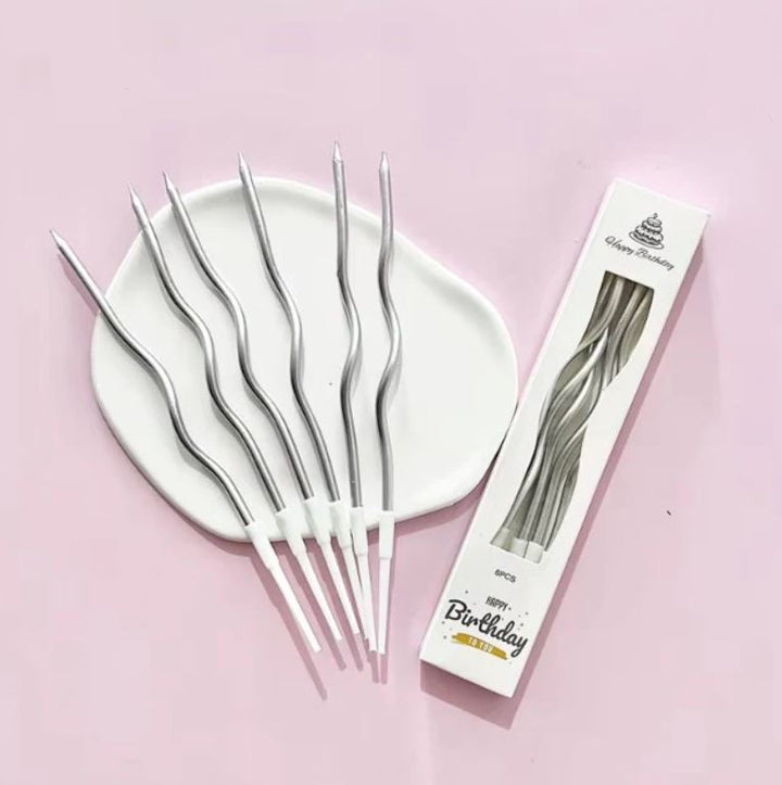 ➣ Chrome Twisty Metallic Cake Candles - 6 Pcs